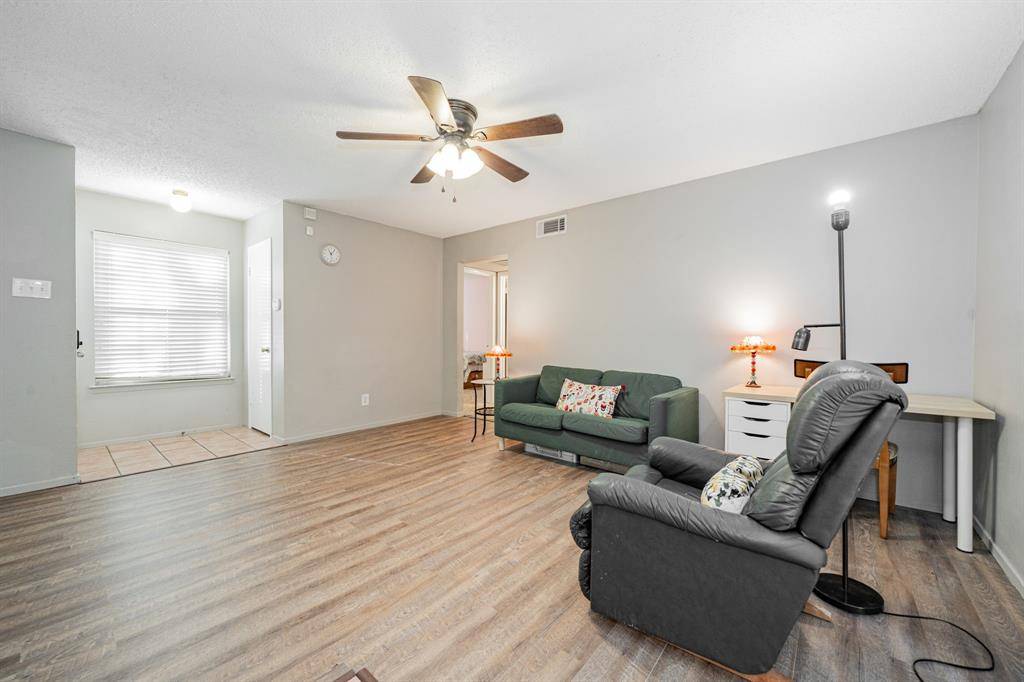Discover effortless, first-floor living inside the gated Bent Tree Forest Condos community in your new 2-bedroom, 2-bath condo! The inviting living space is thoughtfully designed with natural flow and showcases a stylish wet bar with wine rack, glass-front cabinetry, and accent lighting, creating a perfect setting for entertaining or relaxing evenings at home. The light-filled eat-in kitchen features abundant cabinetry, a breakfast bar for casual dining, and a layout that balances function and comfort. Both bedrooms are generously sized, paired with two full baths that offer flexibility for guests, work-from-home space, or everyday living. The primary retreat is complete with two walk-in closets, and the oversized laundry room provides generous built-in storage, making daily living both stylish and practical. Step outside to a covered, fenced patio, an ideal outdoor retreat for morning coffee or winding down at the end of the day. Residents enjoy resort-style amenities including a community pool, hot tub, and tennis courts, all within a secure, well-maintained environment. Ideally located with quick access to the Dallas North Tollway, George Bush Turnpike, and I-635, and just minutes from shopping, dining, and entertainment, this home delivers low-maintenance North Dallas living in a great location. Proudly Claim Your Piece of Texas! Covered parking space 194, uncovered parking space 196.