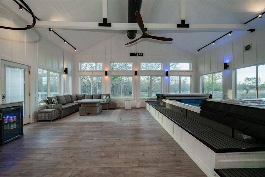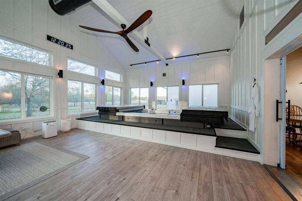 ***Seller willing to contribute $15,000 toward buyer's CLOSING COSTS or RATE BUYDOWN with reasonable offer!***Close to I30, downtown Royse City, shopping, dining, Lake Ray Hubbard and Poetry Community Christian School, this rare seven+ acre, gated and fully fenced retreat offering an indoor swim spa, oversized attached garage and an oversized detached shop space surrounded by mature trees and frequent wildlife sightings. This four bedroom, three and a half bath home offers a flexible layout with a media or guest space upstairs featuring a full bathroom and kitchenette. The downstairs remodeled kitchen includes a gas cooktop and thoughtful updates for everyday living. One of the standout features is the dedicated pool and spa room with a 8 x 15 swim spa, surrounded by large solar screened windows overlooking the acreage. The space opens to the back deck and connects seamlessly to the home, with the option to close it off for privacy. The property also includes a covered livestock shelter, and an 8 x 12 storm shelter than can be accessed from inside the home. You'll love all the extra space for storage in the home and the oversized garage and shop are ideal for more storage, parking or. workshop for equipment and hobbies!