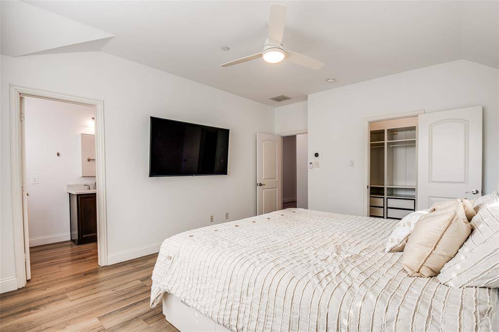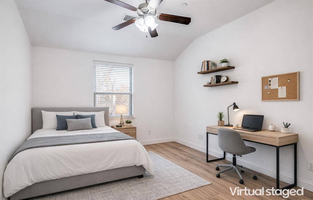 Upstairs, the private primary suite offers a walk-in closet enhanced with an IKEA system closet designed to maximize storage efficiency, along with an en suite bath featuring a separate tub and shower. A spacious secondary bedroom and a full bath complete the second floor.