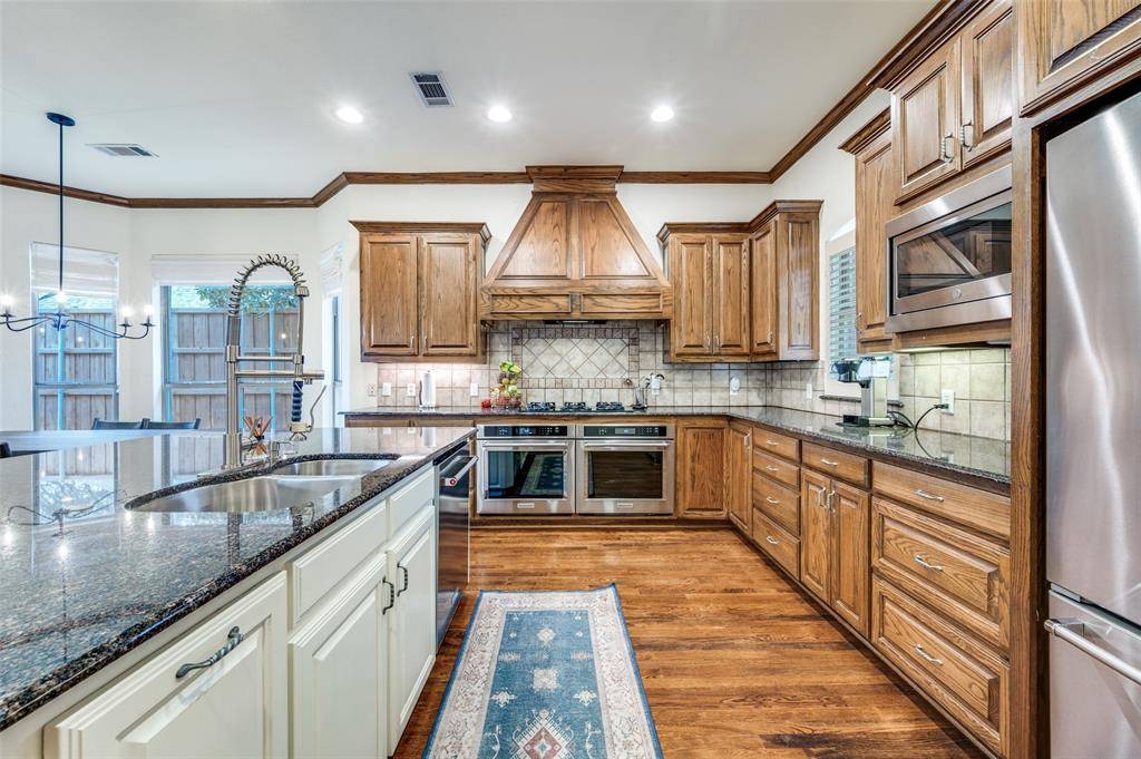 Nestled in the esteemed Plano ISD, this exquisite North-facing 5-bedroom, 4-bath home promises a lifestyle of refined luxury and convenience. Boasting three expansive living areas and a spacious 3-car garage, the residence is a perfect blend of elegance and practicality. The home features timeless details such as nail-down hardwood floors, crown molding, and recessed lighting, all enhancing its sophisticated appeal. The open-concept floor plan includes a kitchen with an oversized island and a breakfast nook that seamlessly transitions into the charming family room, all bathed in abundant natural light. The large primary bedroom offers a tranquil sitting area with views of the inviting pool and includes a massive walk-in closet with built-ins. The versatile office, complete with built-ins and a large closet, offers excellent lighting and can easily serve as a second bedroom on the main floor. Upstairs, a finished bonus room provides additional space for relaxation or entertainment. The stunning beach entry pool and the voluntary HOA make this property even more appealing. Located within walking distance to the highly acclaimed Mathews Elementary, this home perfectly balances luxury, comfort, and convenience. Two of the three HVAC Units replaced in 2023. Whole House Surge Protector Installed in 2023, New Roof and Gutters 2024, Exterior Painted 2024. Interior Painted 2025!