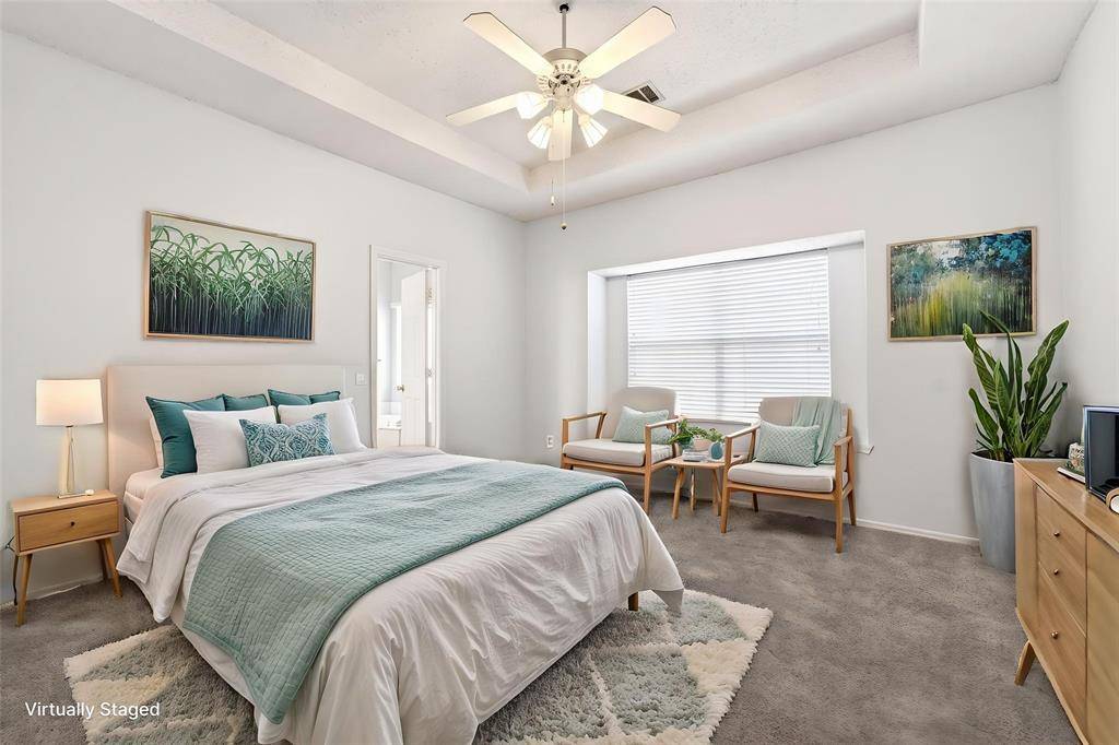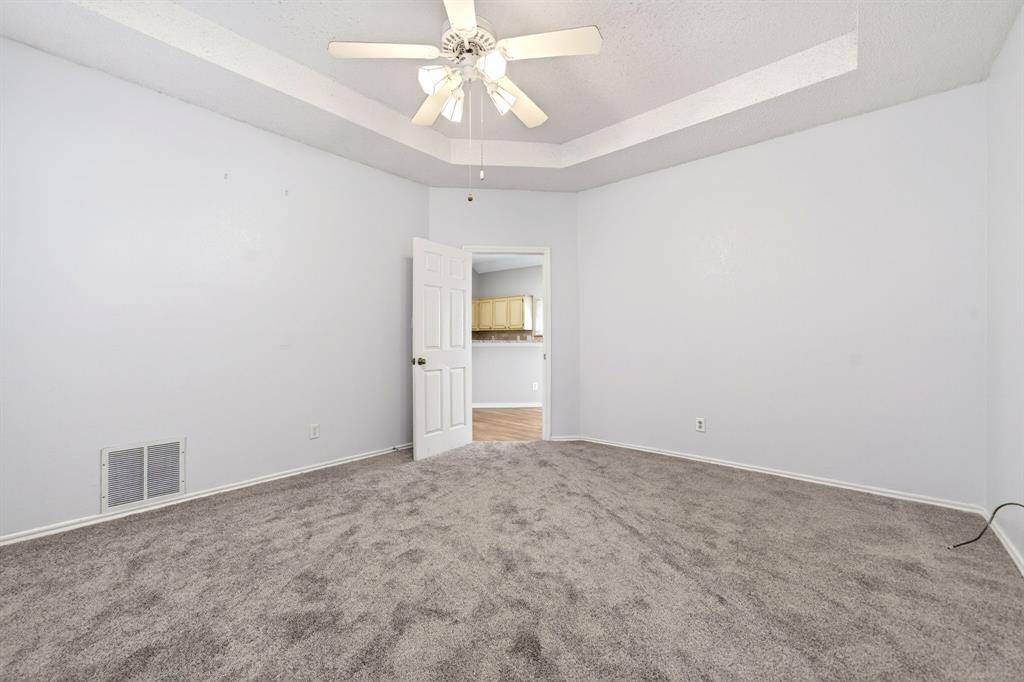 This charming home in the heart of Carrollton is move-in ready and just minutes from Addison! The open floor plan features high ceilings and modern lighting throughout, creating a bright and inviting space. The kitchen offers granite countertops, a stainless steel sink, a breakfast bar, and ample cabinet and counter space for all your storage needs. The living area is highlighted by luxury wood-look vinyl flooring and a gas starter fireplace, perfect for cozy evenings. The primary suite serves as a private retreat with dual sinks, a garden tub, separate shower, and large walk-in closet. Two additional split bedrooms provide privacy. All three bedrooms were freshly painted and have brand-new carpet installed in March 2026. Other features include a rear-entry garage and convenient access to nearby shopping, dining, and entertainment. Located just minutes from Addison, enjoy a vibrant lifestyle with endless dining options, local favorites, and year-round events like Kaboom Town and Oktoberfest, along with easy access to major highways for a quick commute to Dallas and surrounding business hubs. Don't miss the opportunity to make this wonderful home yours! Proudly Claim Your Piece of Texas!