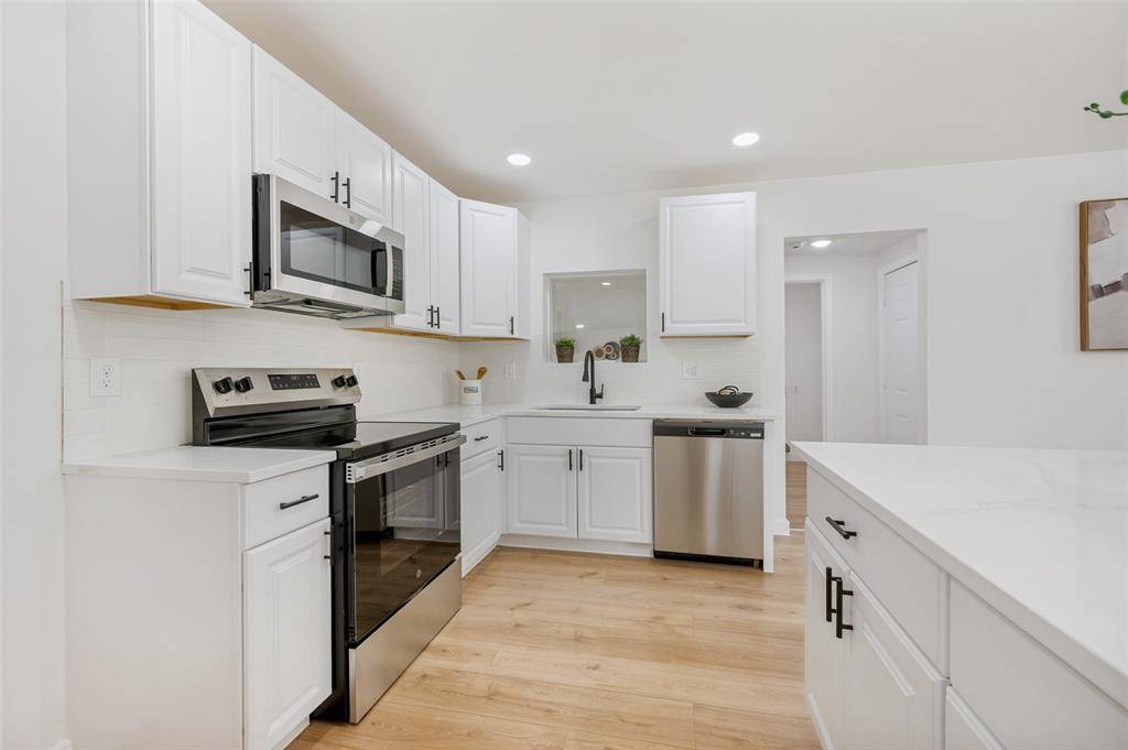 Fully updated and move-in ready, this Dallas home offers a clean, modern feel with an open layout designed for both everyday living and entertaining. Step inside to a bright, airy living space featuring wide-plank flooring, recessed lighting, and a seamless flow into the dining area and kitchen. The kitchen is thoughtfully redesigned with white cabinetry, quartz countertops, stainless steel appliances, and a large island with seating, creating a functional centerpiece for the home. Both bathrooms have been refreshed with modern finishes, custom tile work, and sleek fixtures, while the spacious bedrooms provide comfort and flexibility. Major updates include a new roof and recently completed foundation work, offering added peace of mind for the next owner.Outside, the oversized backyard provides endless potential—whether you envision creating an outdoor entertaining space, garden, or simply enjoying the open space. Conveniently located with easy access to major highways, shopping, and dining, this home is a perfect fit for both homeowners and investors alike, also making it an excellent turnkey rental opportunity. Preferred lender incentive available. Buyers who choose the seller's preferred lender may receive a lender credit toward closing costs. Contact listing agent #2 for details.